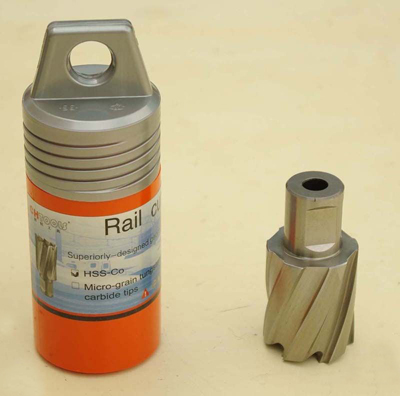 應(yīng)用:鋼軌鉆孔,每個鉆頭可以鉆鋼軌30-50個孔,并可反復(fù)磨3-5次。