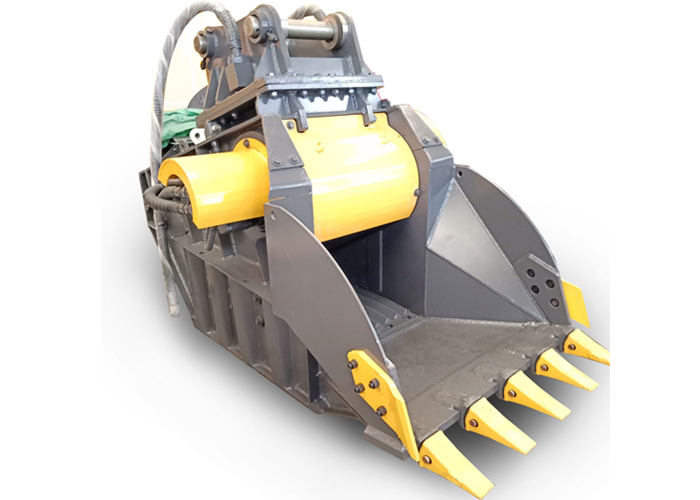 顎式破碎斗是一種機(jī)架外形成鏟斗狀的新型液壓破碎屬具,作為挖掘機(jī)的配套屬具,在使用時,該裝置以挖機(jī)臂為操作載體鏟裝物料,并對鏟裝的建筑垃圾或物料進(jìn)行破碎處理,從而可以得到所需求的物料塊度以及可回收有用材料。通過現(xiàn)場挖掘、現(xiàn)場破碎、現(xiàn)場回收利用,實(shí)現(xiàn)建筑垃圾資源化、減量化、無害化,不僅大大減少了運(yùn)輸量,節(jié)省填埋費(fèi),提高了回收利用率,而且節(jié)約了大量填埋用地,減少對環(huán)境的污染,還能減少對天然砂石的開采,保護(hù)了自然資源,符合國家可持續(xù)發(fā)展戰(zhàn)略。該裝置具有結(jié)構(gòu)靈活,工作可靠,適應(yīng)性強(qiáng),成本低,易維護(hù)等突出優(yōu)點(diǎn),還可廣泛應(yīng)用于礦山開采、道路維護(hù)與建設(shè)等行業(yè)中。