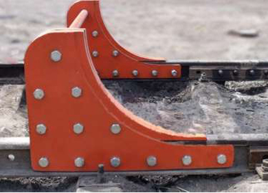 月牙擋車器主要用于43kg、50kg、60kg軌型,由于庫內(nèi)停留車輛與月牙擋車器距離近,而且?guī)靸?nèi)股道坡度小或者沒有坡度,車輛即使溜逸速度也很低,所以設(shè)計了月牙擋車器,安裝于線路終端,如遇車輛溜走,撞上月牙擋車器,溜逸車輛將被強行擋住。